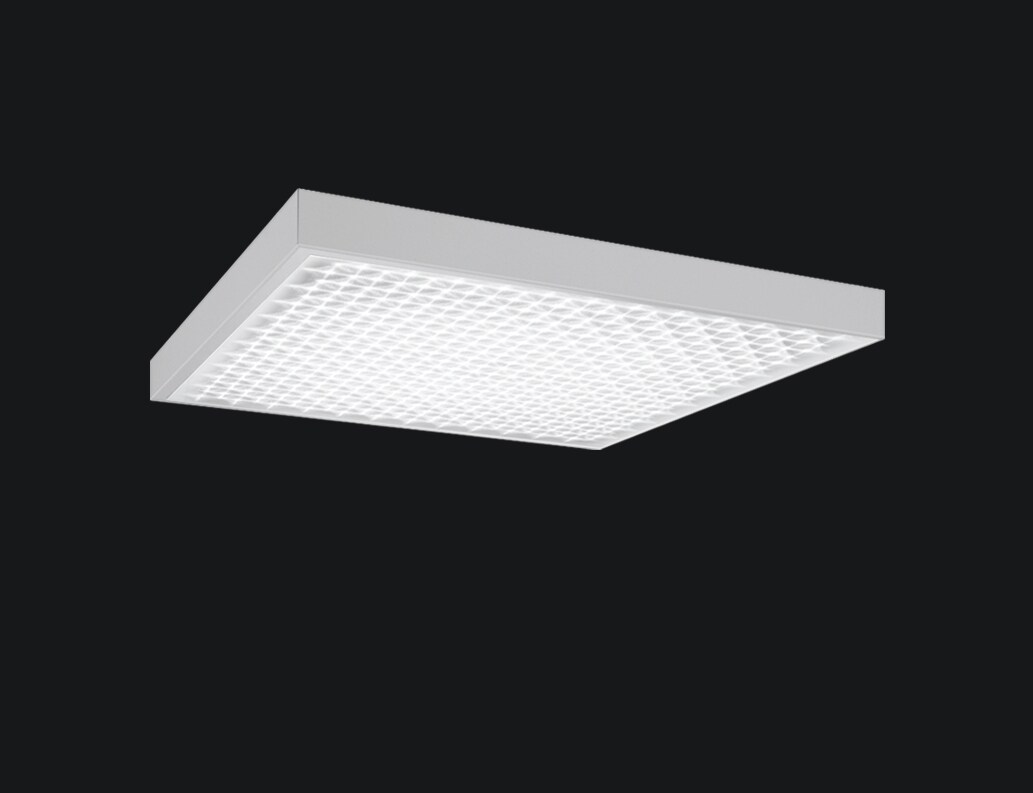 LED-Flächenleuchte QUADRO FLAT mit modularer DEN-Technologie für Deckenaufbau mit Mikroprismenabdeckung, Versorgungseinheit integriert