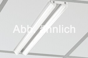 LED-Einbauleuchte D-LINE mit Linsenoptik und modularer DEN-Technologie zum Einlegen in abgehängte Deckensysteme mit sichtbarem T-Profil Modul 625, symmetrisch, 2 Leuchteneinheiten schwenkbar, Versorgungseinheit integriert