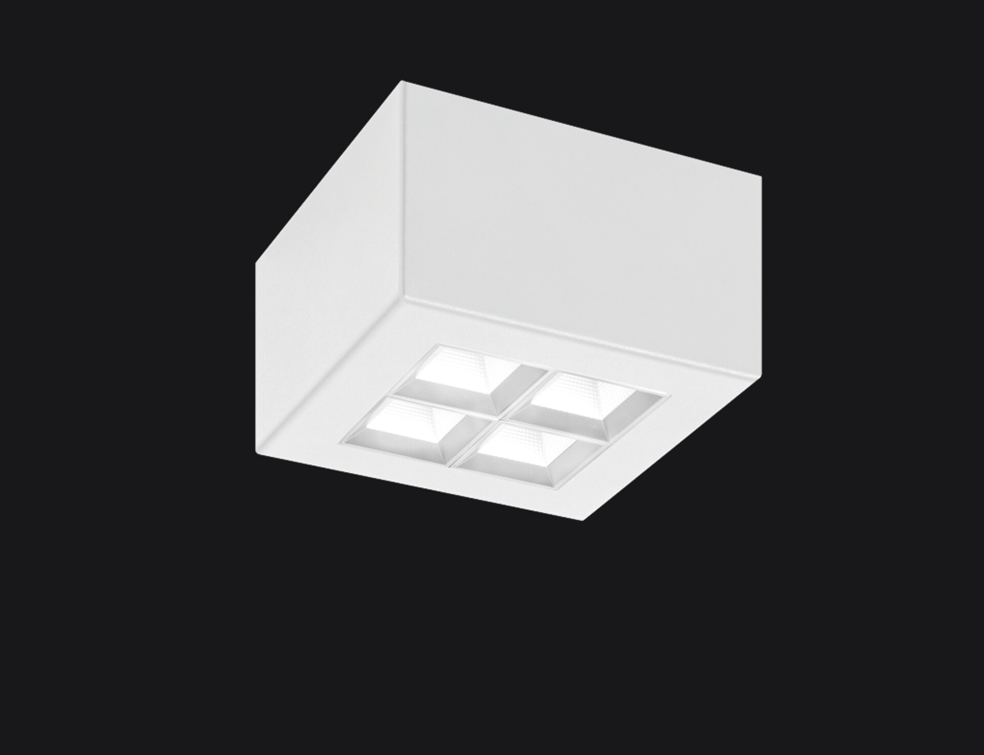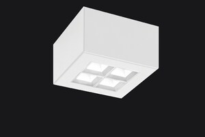 LED Aufbauleuchte QLM-TYPE quadratisch mit modularer DEN-Technologie, mit 4 pyramidenförmigen Einzelreflektoren (je 2 in 2 Reihen), inkl. Treiber mit einstellbarem Lichtstrom. Werkseitig auf max. Bestromung eingestellt.