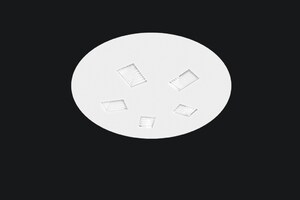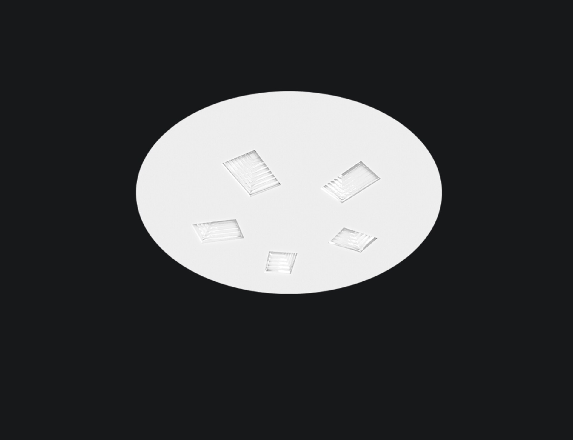 LED Einbauleuchte MG-TYPE rund mit modularer DEN-Technologie, mit 5 sternförmig angeordneten pyramidenförmigen Einzelreflektoren für abgehängte Deckensysteme. Ideal als Sanierungsleuchte zum Einbau in vorhandene Deckenöffnungen von konventionellen Downlights, direkt strahlend.